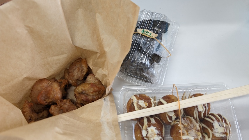 この日は、唐揚げやたこ焼き、おにぎり、ドリンクなどを楽しみました。