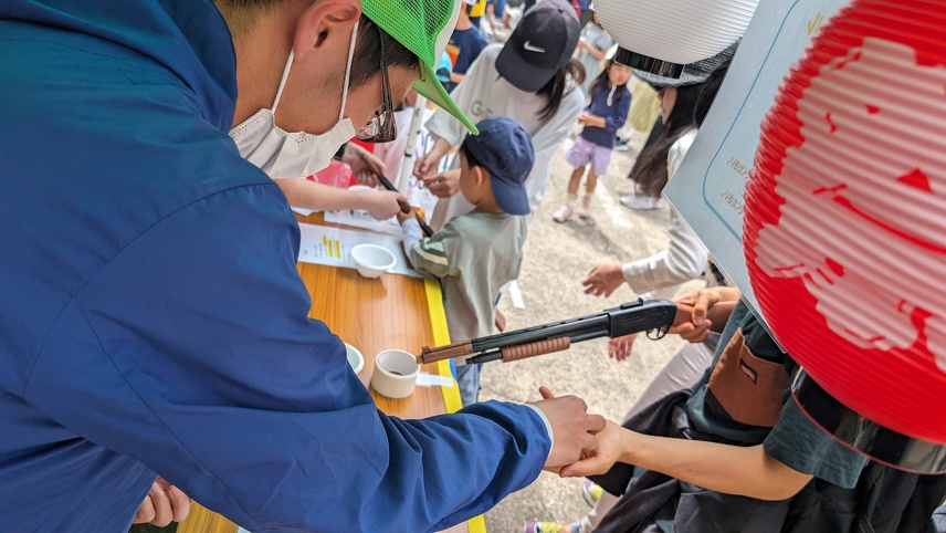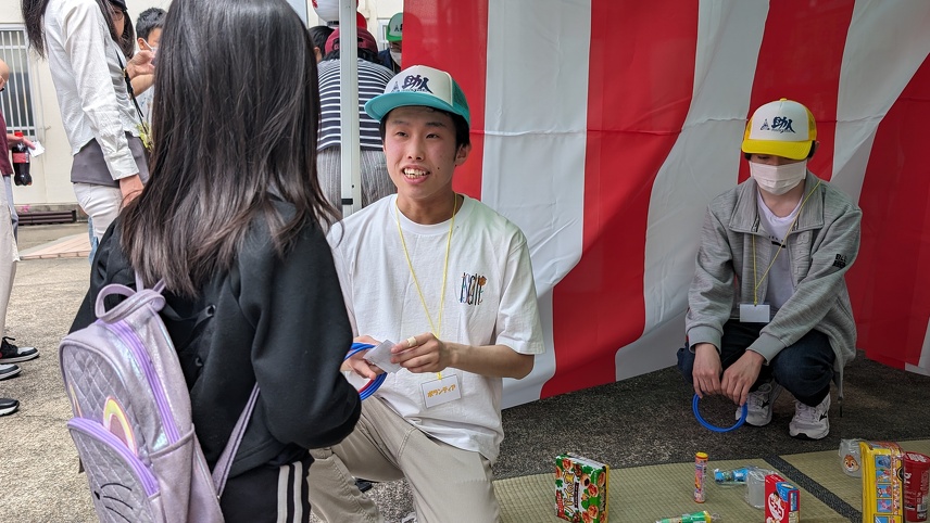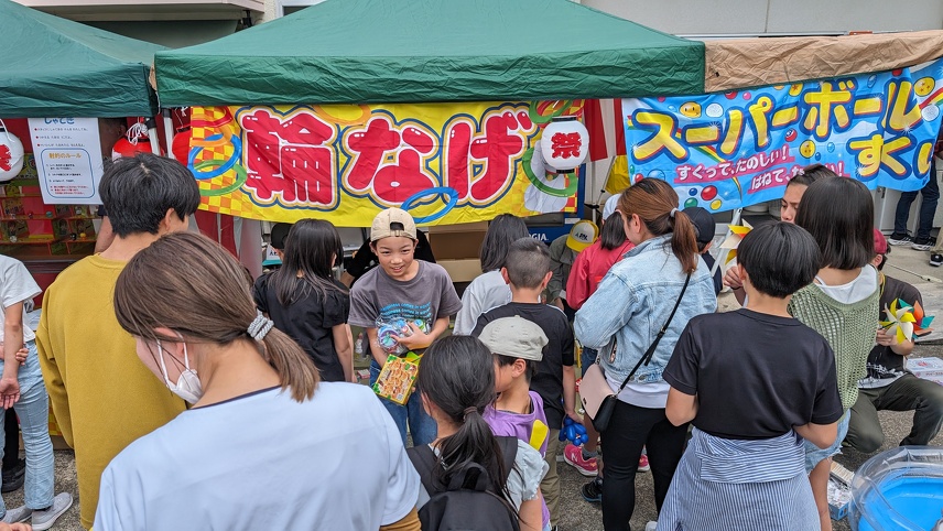お祭りがスタートしてからは、屋台に遊びに来る子どもたちの目線に合わせて、一緒に楽しみながらも、屋台に来てくれた子どもたちに喜んでもらうために、精一杯のおもてなしをしていきました。