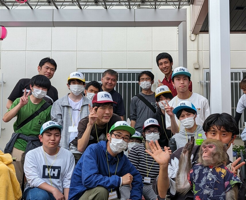 最後は、ショウを見せてくれたサルと、ボランティアに参加してくれた学生・同行した教員と一緒に写真撮影をして終了しました。