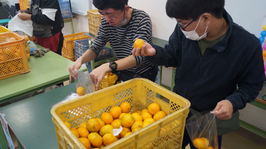 一部のキッチンカーでは、新しく仕事を任されて、焼きそばのパック詰めやレジ打ち、みかんの袋詰め、呼び込みなど各店舗で頑張っている姿を見ることができました。