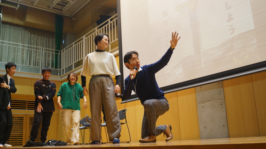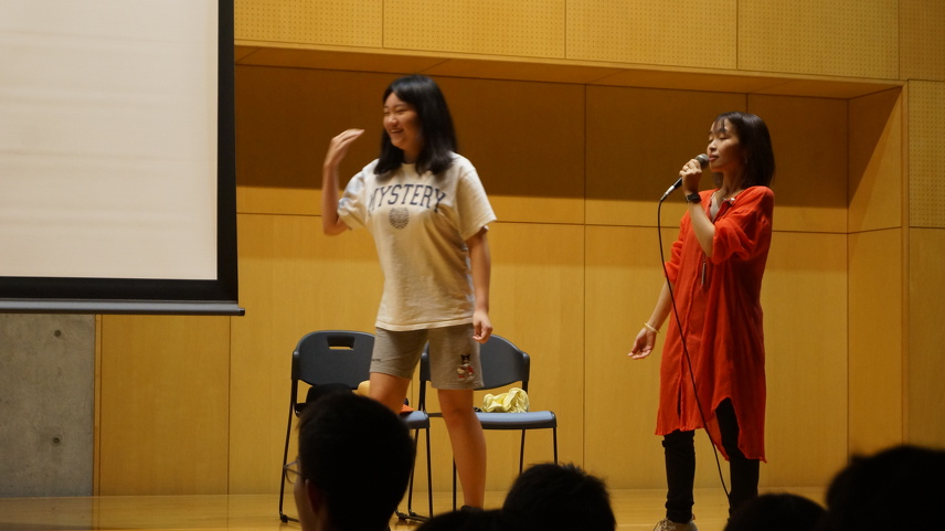 その後、学生がステージに上がり、パフォーマンスをしたり、シチュエーションなどを指定したりなど、