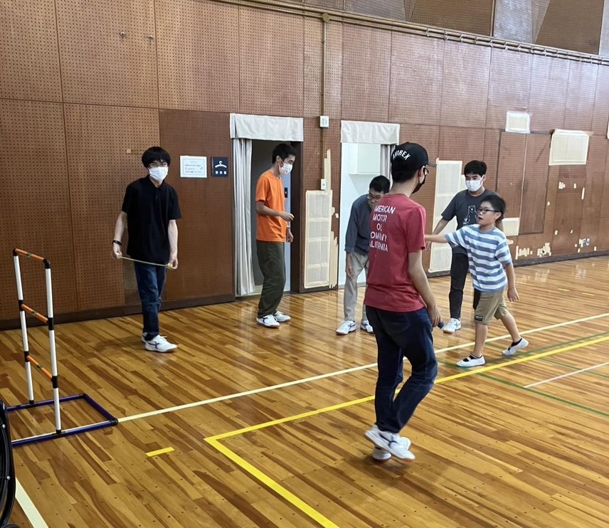 学校から持参したラダーゲッターを子供たちに教えたりする姿もみられ