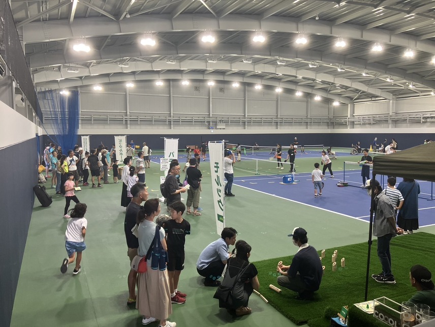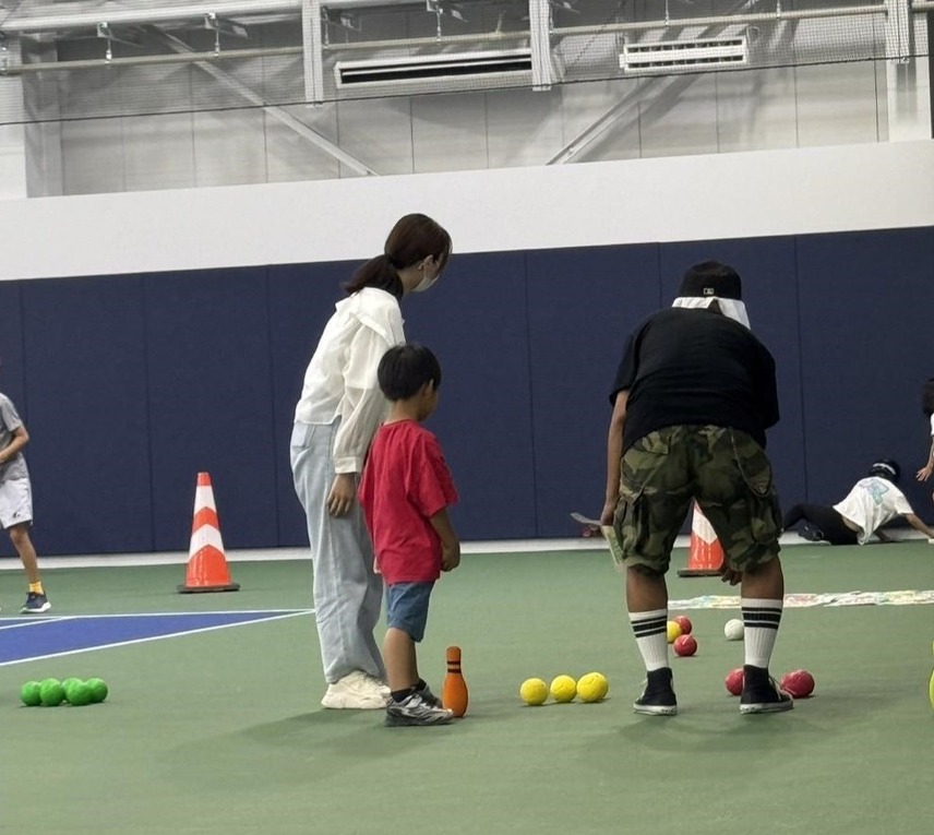 今後、注目されるであろう新しいスポーツの体験コーナーのお手伝いと