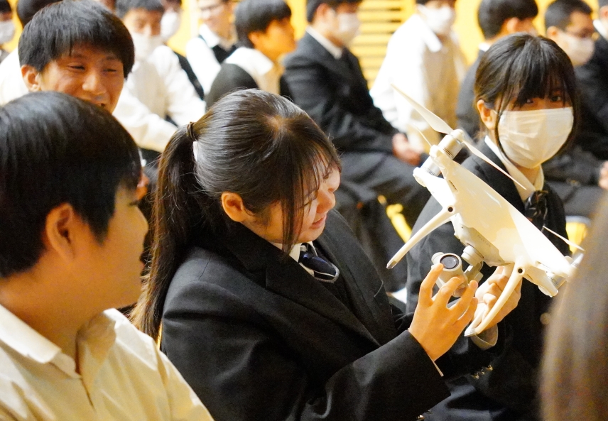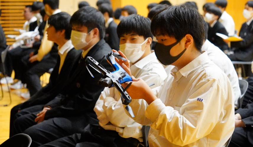 11月10日(月)、12日(水)、13日(木)の3日間、本校において、高等学校DX加速化推進事業(DXハイスクール)の一環として、中電ドローンサービスの桑島講師をお招きし、「ドローン講習」を実施しました。