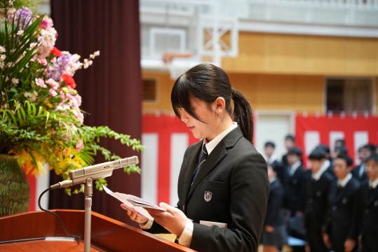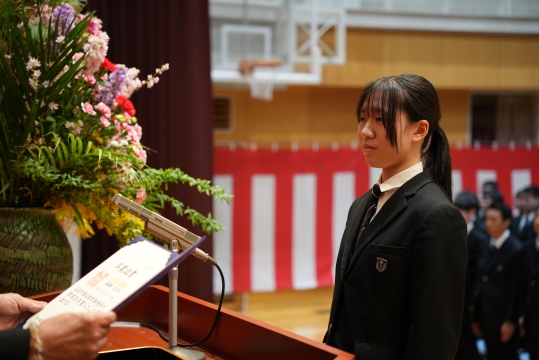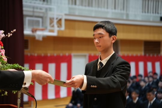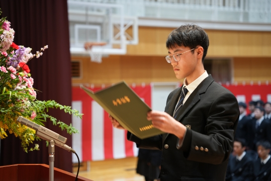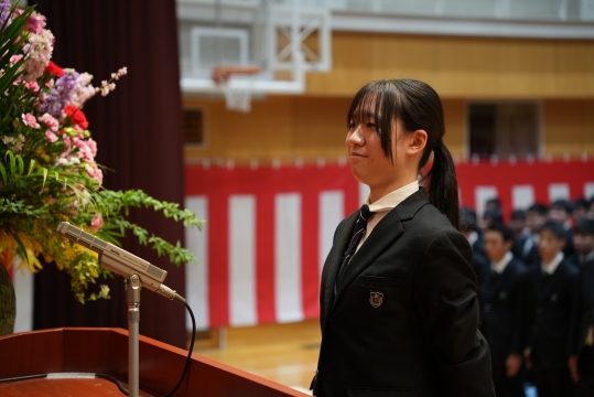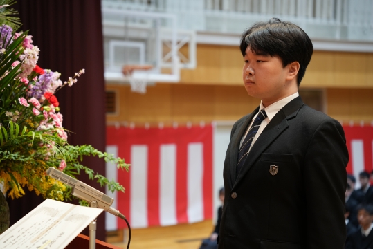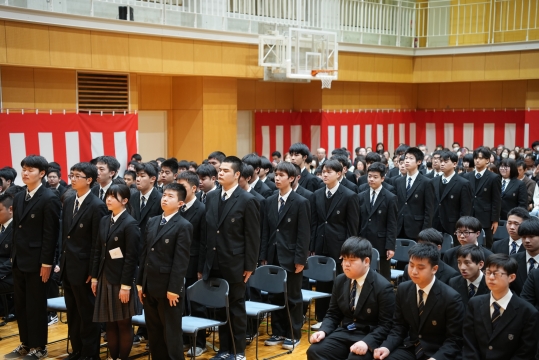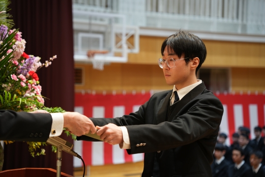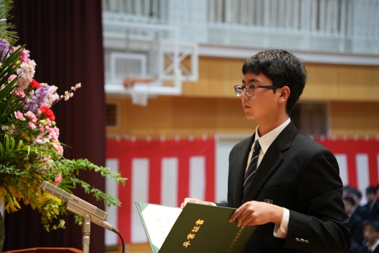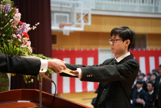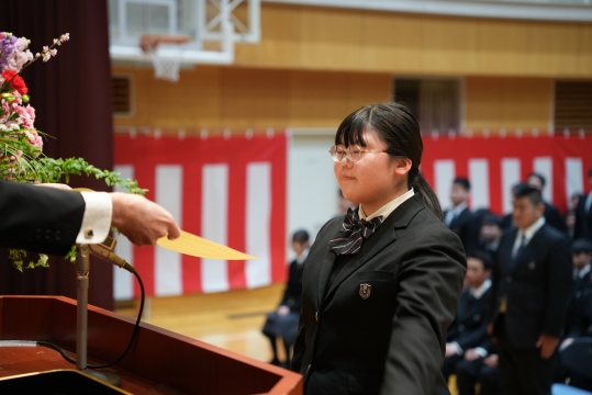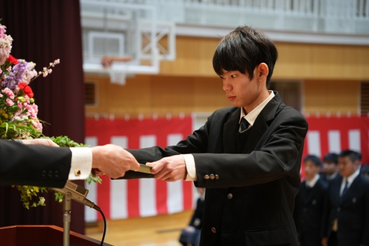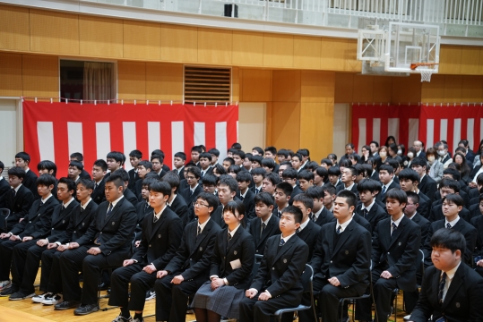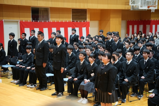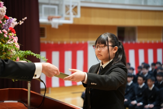特に、担任の先生から名前を呼ばれた際の一人ひとりの返事は、3年間の成長を感じさせる大変立派なものでした。 卒業生たちの真っ直ぐな思いと教職員、保護者の皆様の思いの通じた素晴らしい式典となりました。