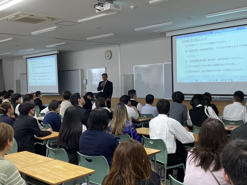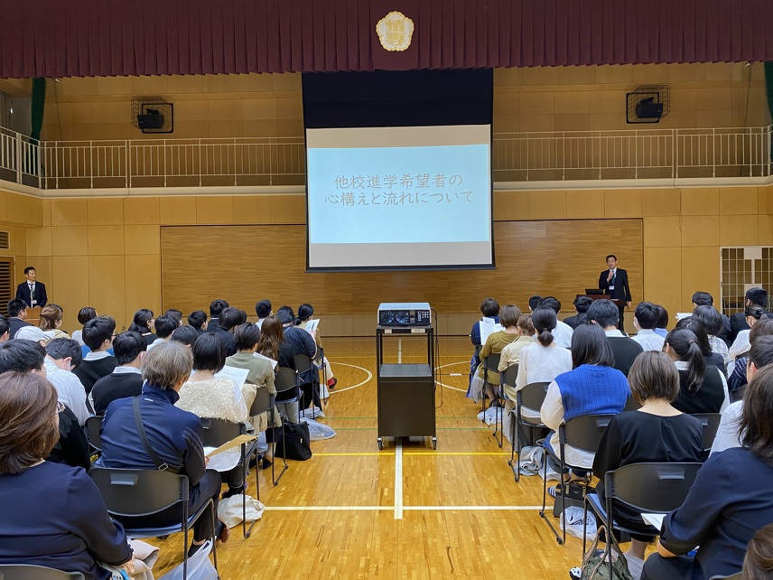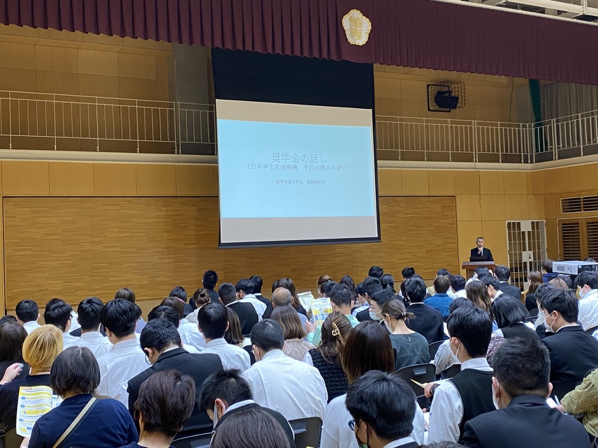 進路説明会(3年生) 2025/04/25行事 4月25日(金) 、3年生の進路説明会を開催しました。 ご多忙のところ、大勢の保護者の皆様にご参加いただき、誠にありがとうございました。 本校専門課程への進学説明や就職活動の手順、奨学金等について説明させていただきました。今後、ご心配なことがごさいましたら、担任までお気軽にご連絡ください。 校長挨拶 専門課程の説明・費用について 専門課程のサポート体制について 他校進学者の心構えと流れについて 就職の流れについて 奨学金について
