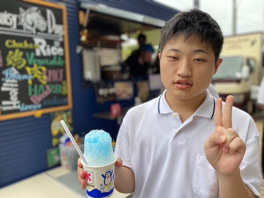 今日は、かき氷やクレープがあり暑さも和らいでる様子でした。また、からあげを購入している生徒も笑顔でした。