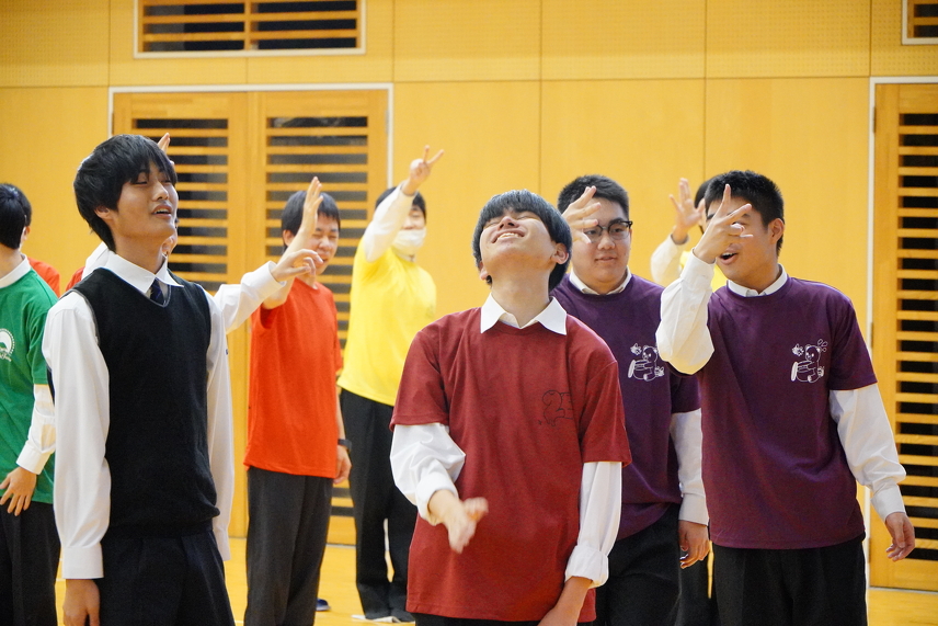 まずは、「インドア競技大会」と題したミニゲーム大会も開催され、クラスごとの有志が参加して一喜一憂する姿が見られました。その後、ステージ発表も行われ、十数名のグループが歌やダンスを披露し、会場を大いに盛り上げてくれました。
