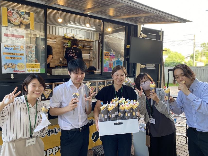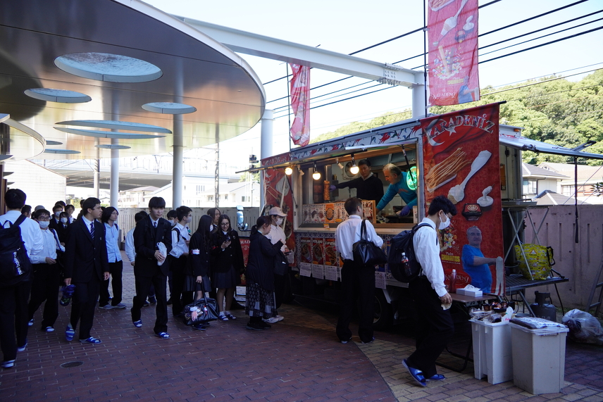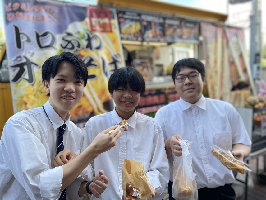 また、中庭には自衛隊の広報スペースやキッチンカーが集まり、生徒たちは気になる食べ物を購入して笑顔を見せながらお腹を満たしていました。