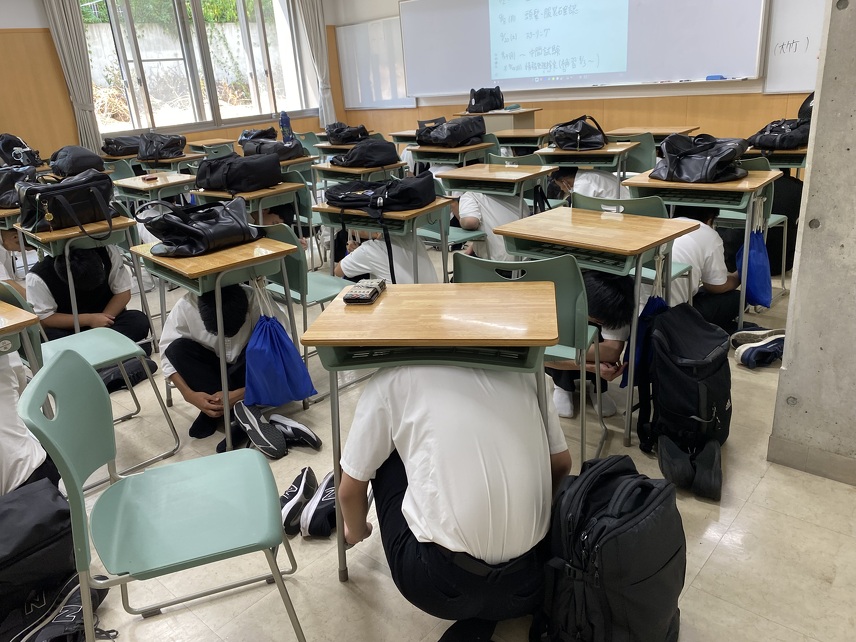 避難訓練では、地震発生時の対処法や避難経路・避難場所などを確認しました。生徒全員が真剣に取り組み、防災意識を高める機会となりました。