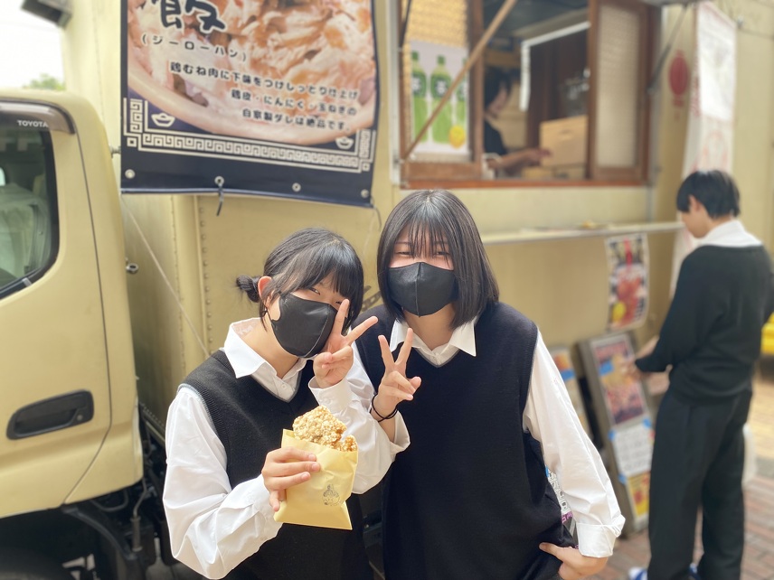 今日は、かき氷やクレープがあり暑さも和らいでる様子でした。また、からあげを購入している生徒も笑顔でした。